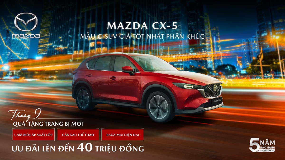 Tháng 9/2025, Mazda CX-5 tăng trang bị và ưu đãi lên đến 40 triệu đồng, giá bán sau ưu đãi từ 709 triệu đồng – mức giá tốt nhất phân khúc C-SUV hiện nay.